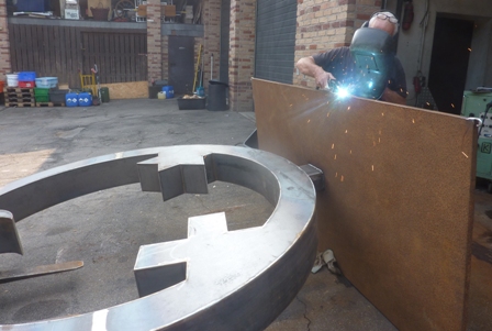 Zusammmenfügen der Stahlteilenach dem Sandstrahlen gesteuerter Oxidationsprozeß